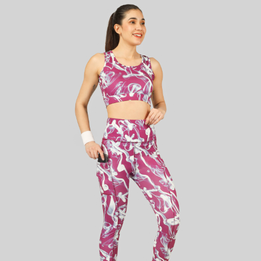 Yogini Flow Print Matching sports bra and high-waist leggings For Women With Side Pocket
