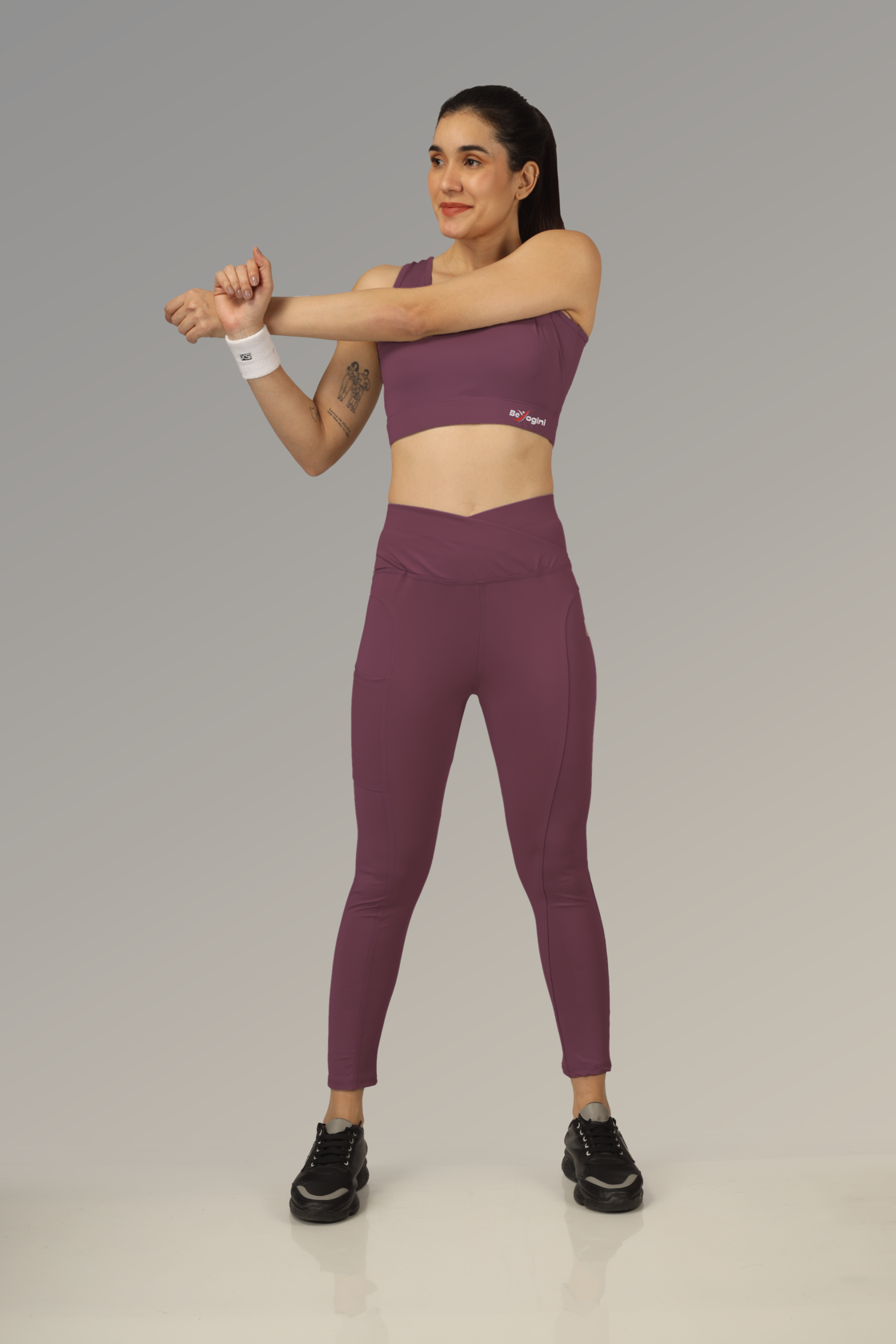 Vibe Fit V-Belt Matching sports bra and high-waist leggings For Women With Side Pocket