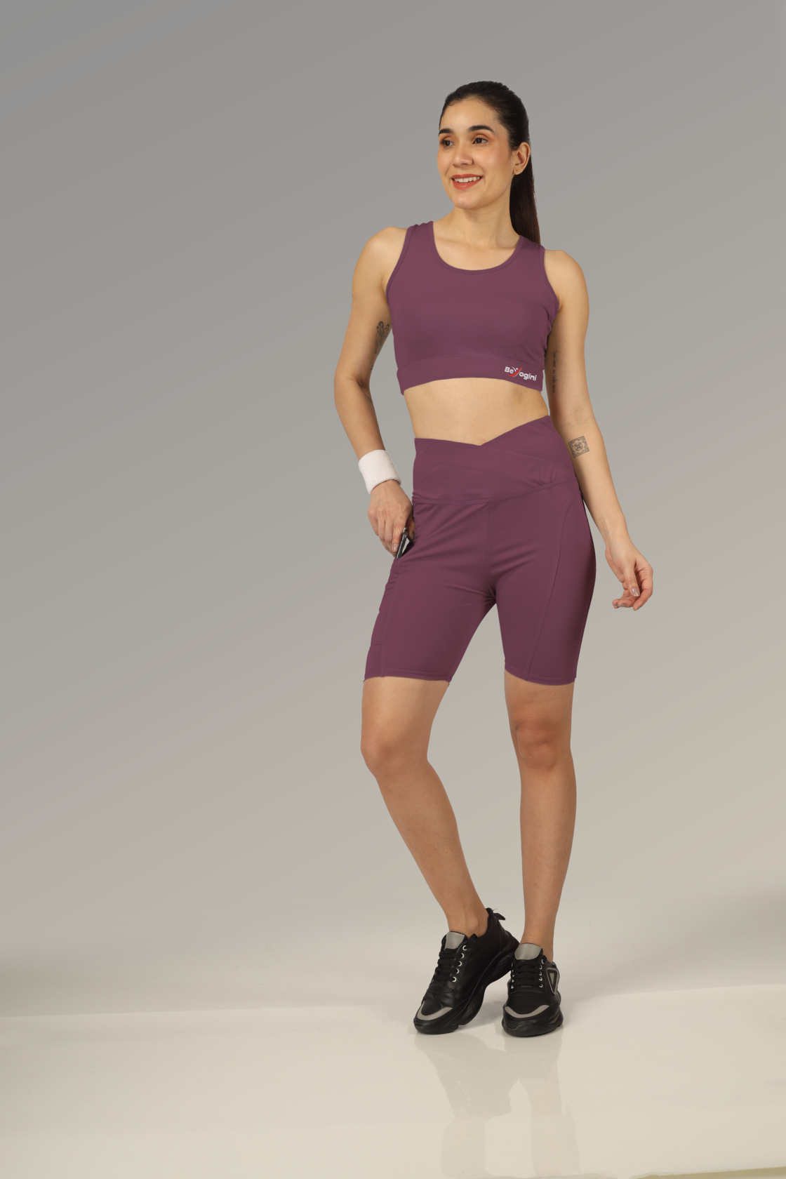 Vibe Fit V-Belt Matching sports bra and high-waist Short For Women With Side Pocket