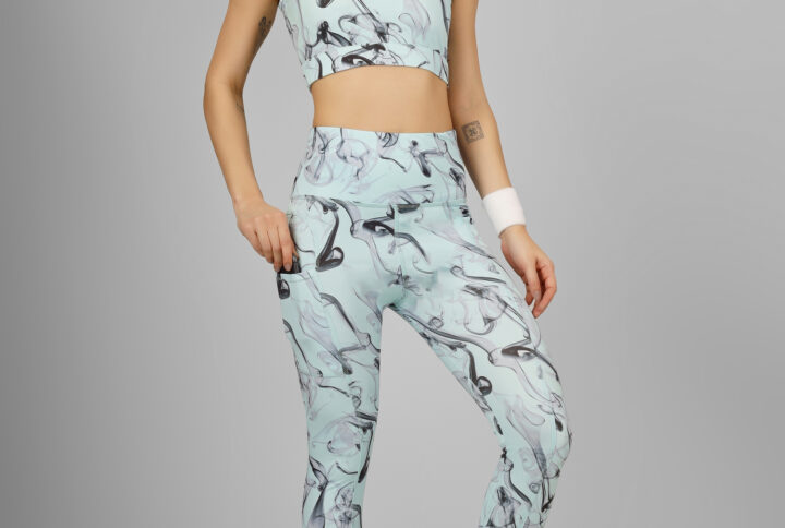 Yogini Flow Print Matching sports bra and high-waist leggings For Women With Side Pocket