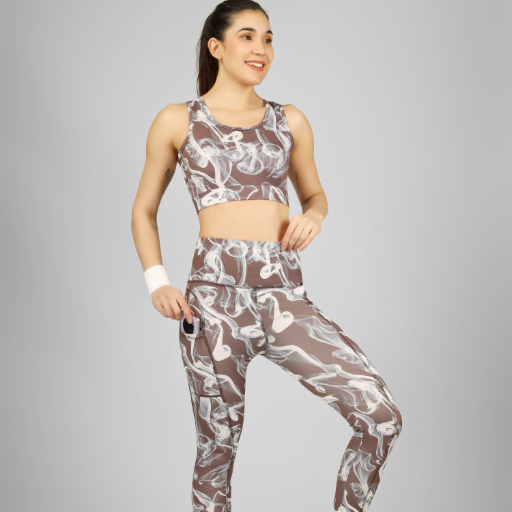 Yogini Flow Print Matching sports bra and high-waist leggings For Women With Side Pocket